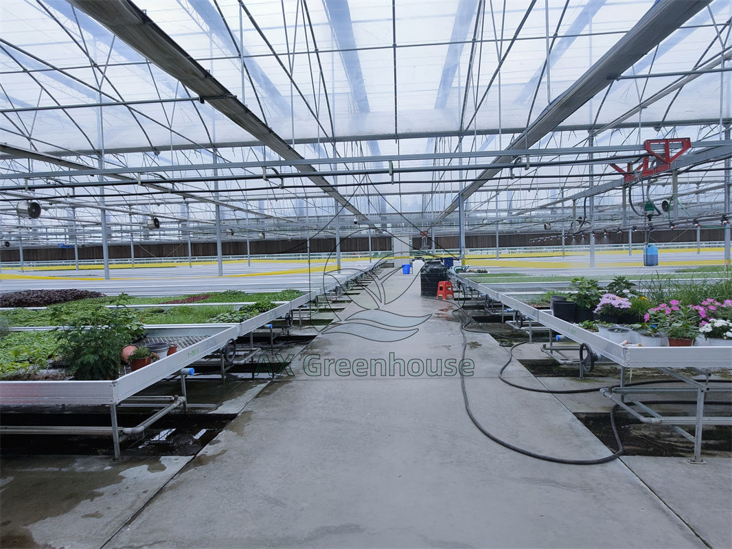 El semillero móvil (banco rodante) adopta tuberías galvanizadas por inmersión en caliente, el marco está hecho de aleación de aluminio,