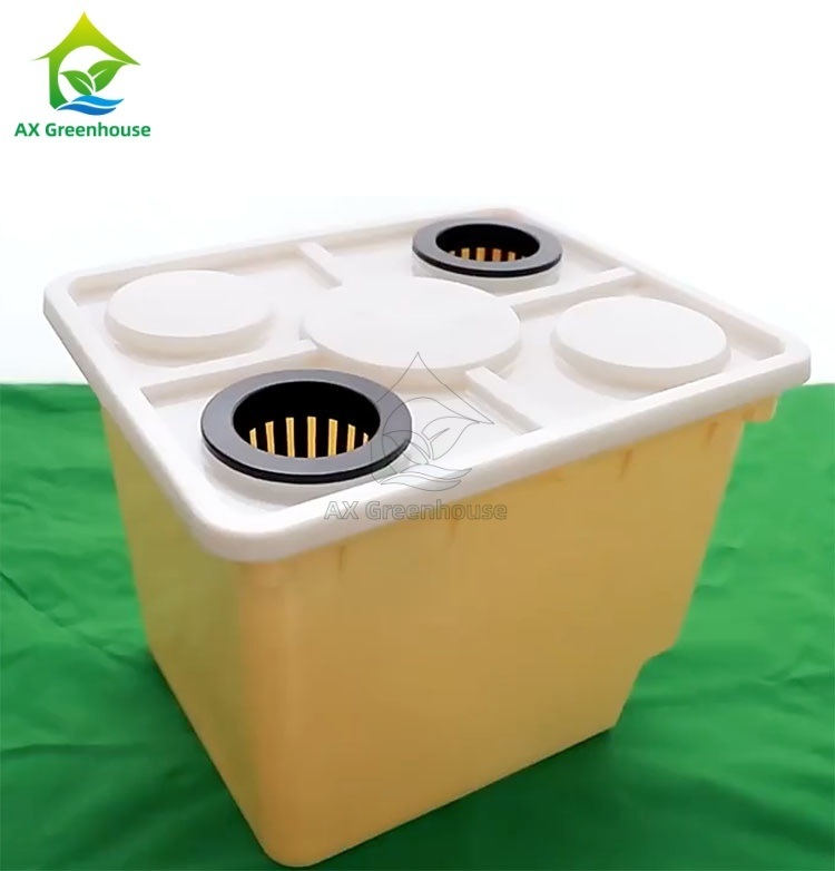 Sistema hidropónico Dutch BucketLos barriles holandeses, también conocidos como barriles de plantación HL, están disponibles en colores beige y negro,con una cubierta superior blanca y una estructura de diseño únicaLa cubierta superior puede bloquear la luz e impedir la reproducción de algas.El dispositivo de drenaje del sifón inferior permite que el exceso de solución de nutrientes para fluir de nuevo a la piscina de solución de nutrientesHay un acuífero de 5 cm en el fondo, que es adecuado para el cultivo de tomates, pepinos, pimientos, berenjenas y otras frutas y verduras.